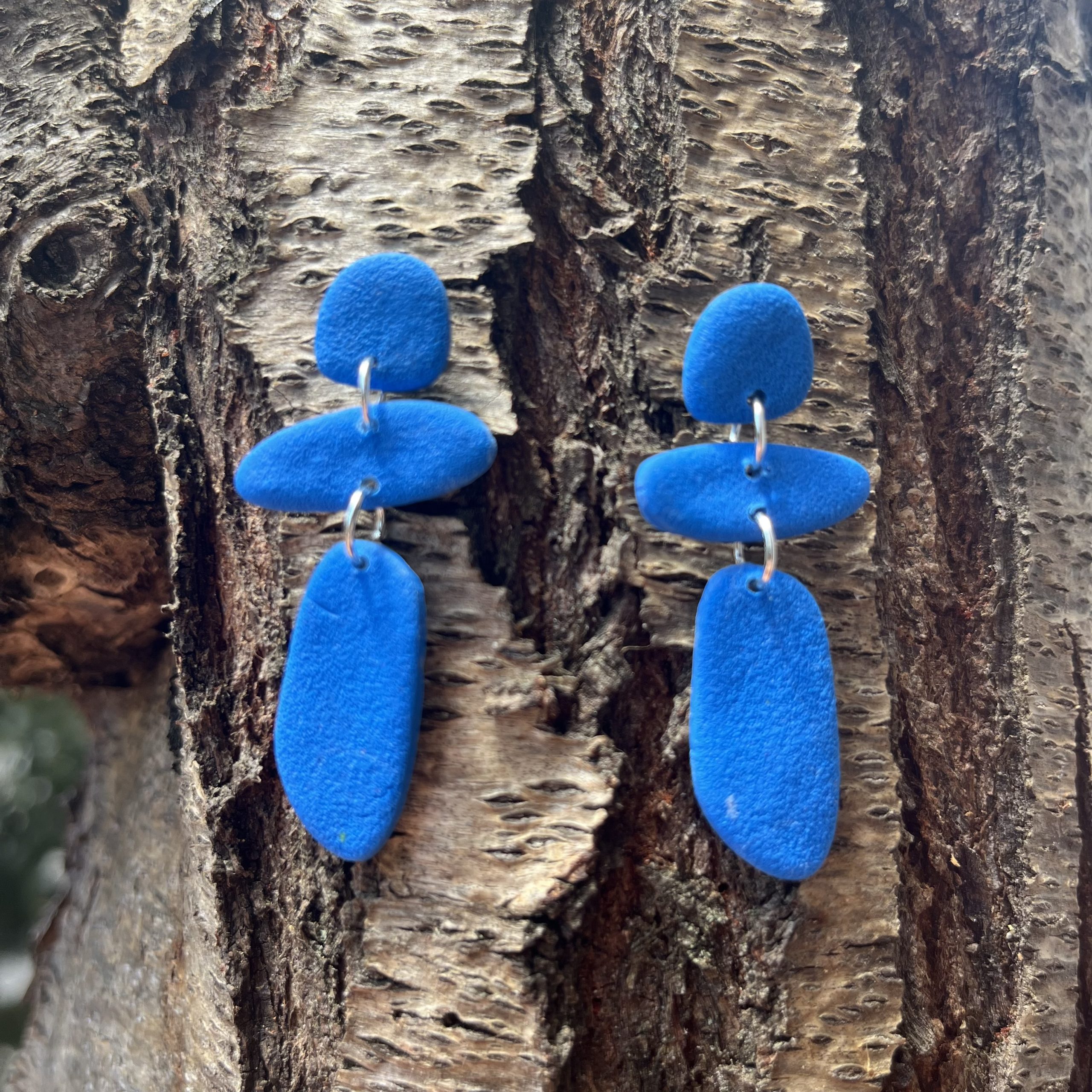 Arracades composades per tres petites peces de color blau.